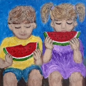 "Shared Sweetness" - 11-1/2" x 13-1/2" framed, $175