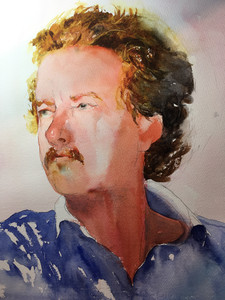 The unpredictability and fluidity of watercolor are what excites me. I love to watch the colors blend and the painting paint itself. I took a class in watercolor thirty years ago and fell in love with the medium. Since then, I have painted off and on while working as an RN. Other than taking a workshop with Janet Rogers and one with Skip Lawerence, I have been learning on my own with books by Charles Reid. I love his direct painting approach and his loose, watery style. Charcoal just came naturally for me. I think I am drawn to these two mediums because they both let me work in a spontaneous, expressive way.