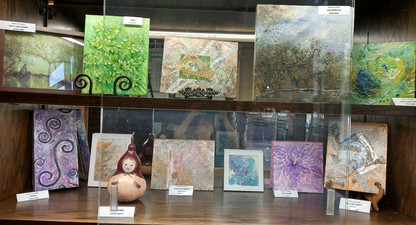 The CCAL Display Cabinet can be found in the right side of the gallery as you enter from the front doors. It hosts a rotating multipiece display with a collection of new pieces from a Crooked Creek Art League artist every three months.