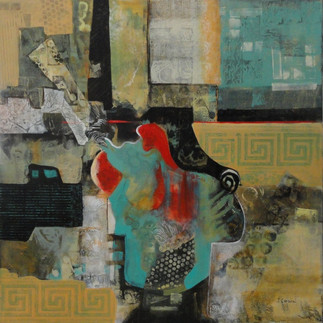 "Line Crossing" - acrylic, 30 x 30, $900 "Backyard Trio" - oil, 20 x 16, $650 "Music of the Mind" - 30 x 30, $900