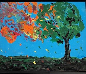 I first became interested in painting years ago by watching Bob Ross videos. More recently I saw a simple palm tree painting in Newberry which I attempted to recreate. As a self-taught painter, I use acrylics and mainly do abstracts. I like to try new things that can be quickly painted. I am an active member of the art league and volunteer to hang my paintings in the public galleries.